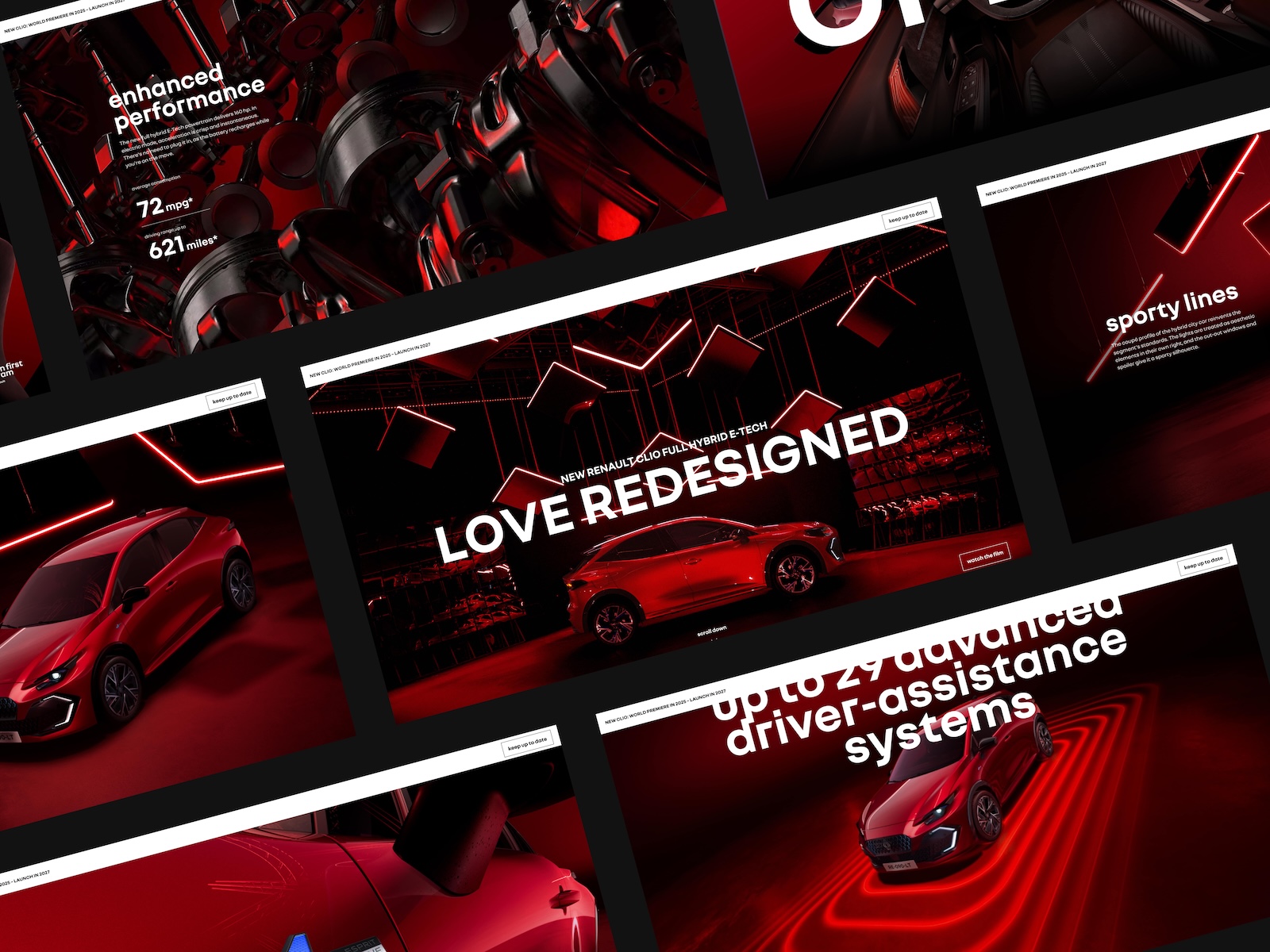 Scrolling deeper reveals every last curve and detail of Renault Clio's seductive new design. A dizzying blend of sensual animation and extreme close-ups in alluring red.